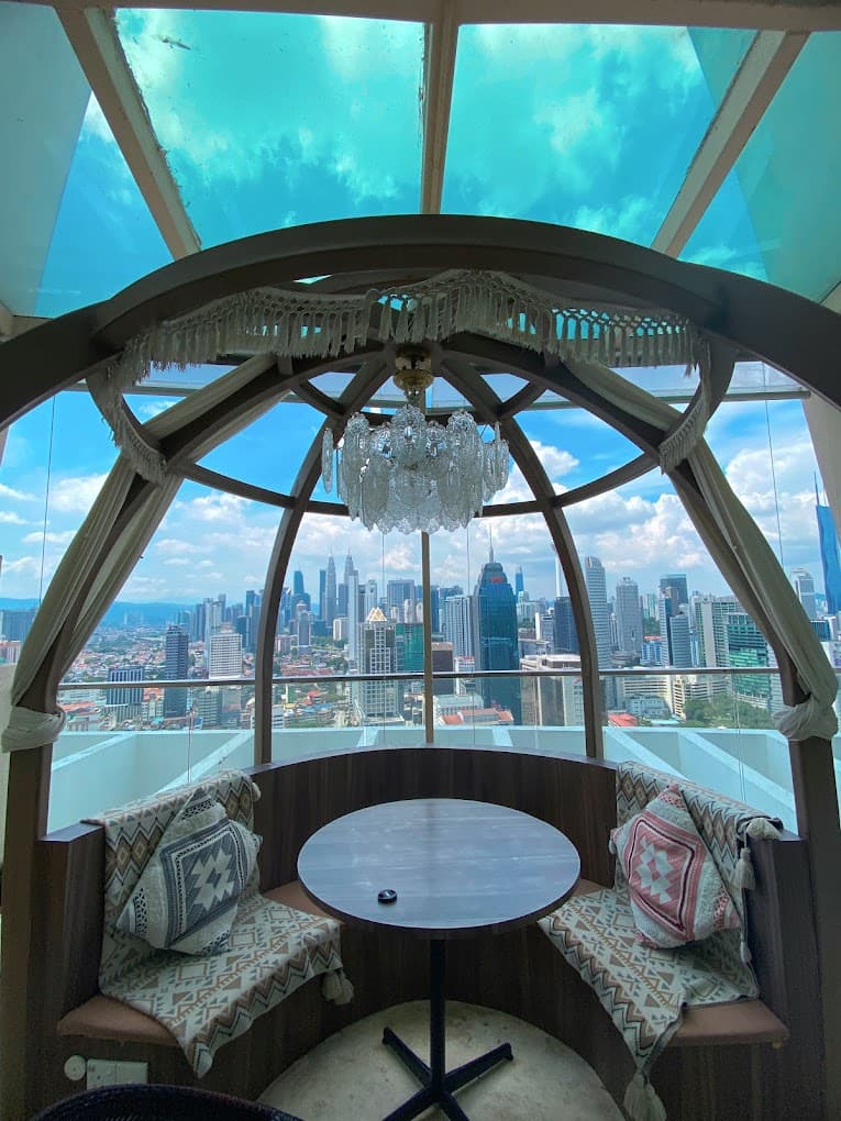 Fly Me to KL is Kuala Lumpur’s latest hidden gem, an upscale Moroccan-themed café perched on the 37th floor of the Regalia Residence. This stylish venue combines breathtaking views of the Kuala Lumpur skyline with an ambiance that transports diners to a desert-inspired retreat. Here, guests unwind in cozy, Moroccan-inspired décor featuring soft couches, hanging chairs, and intricate lanterns, all against the backdrop of KLCC and KL Tower’s glimmering lights. The café's menu emphasizes unique, Instagram-ready treats and refreshing coolers that have captured the hearts of both locals and tourists. Signature creations include the playful “Flycheeto” mocktail with a blend of lychee and other vibrant flavors and a carefully curated selection of bites like nachos with fresh salsa and avocado. For evening visitors, the setting becomes even more magical, making Fly Me to KL an ideal spot for a romantic dinner, a celebratory gathering, or a memorable night out with friends